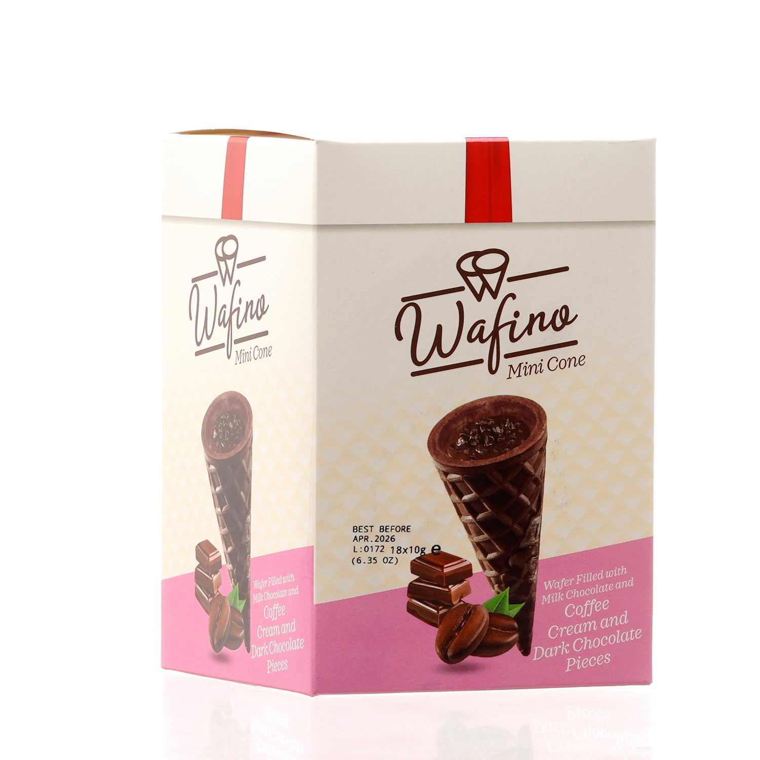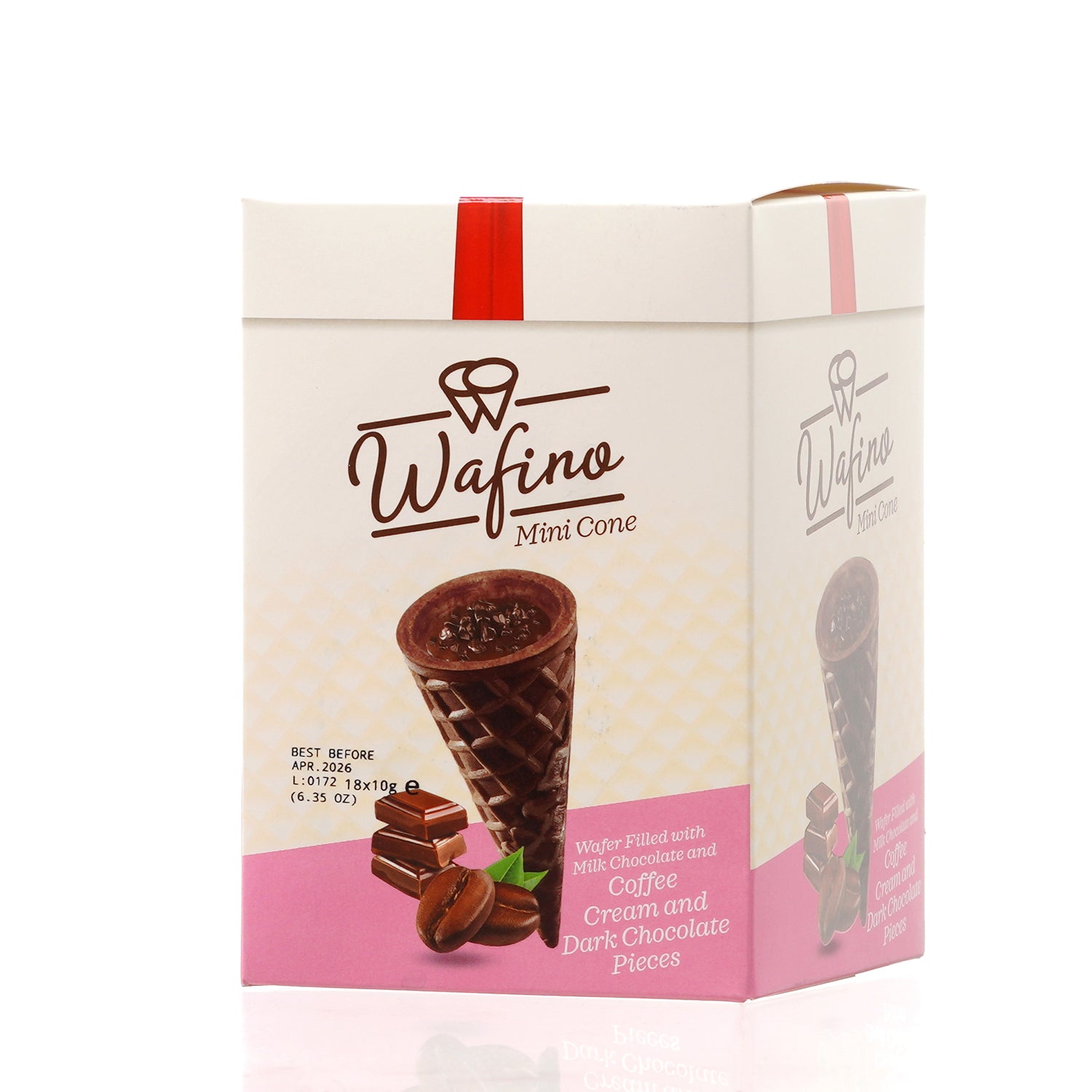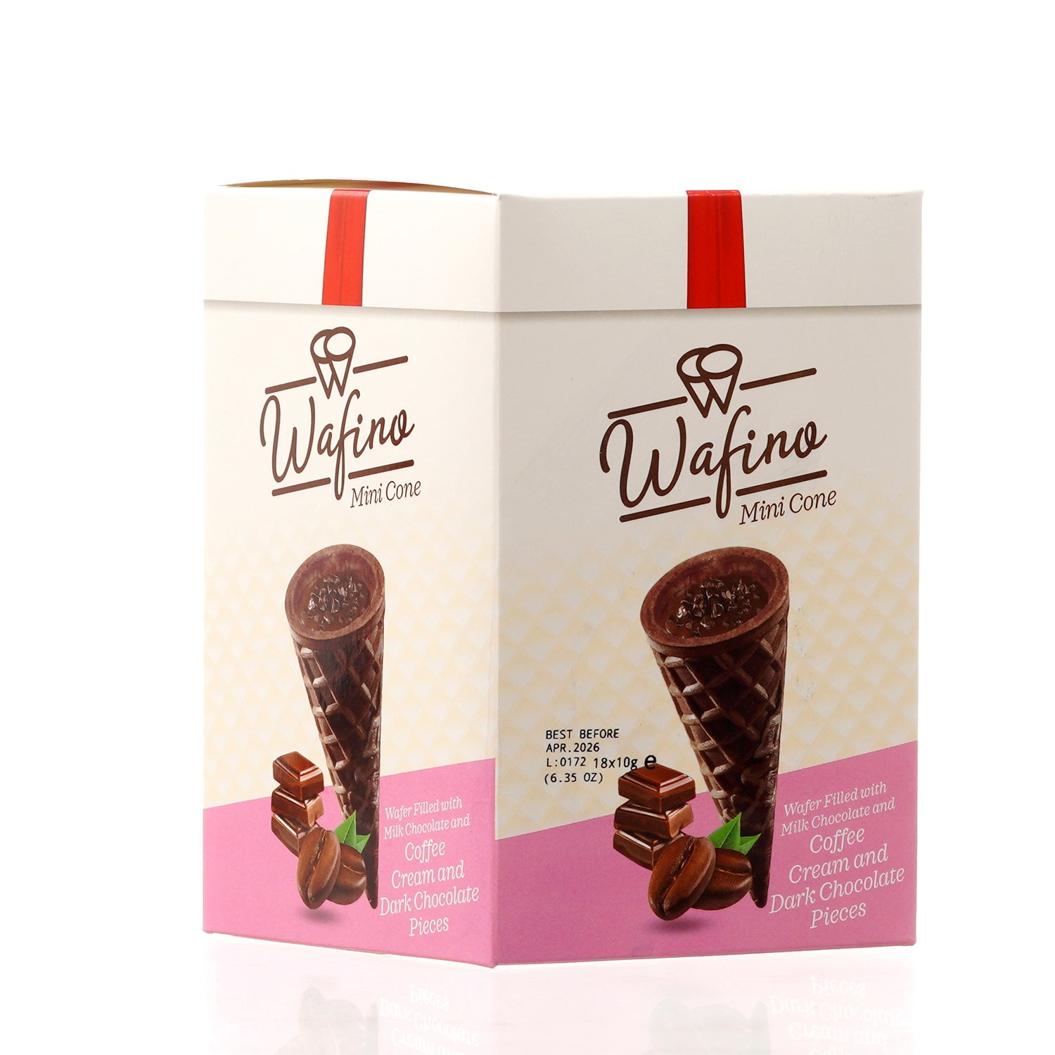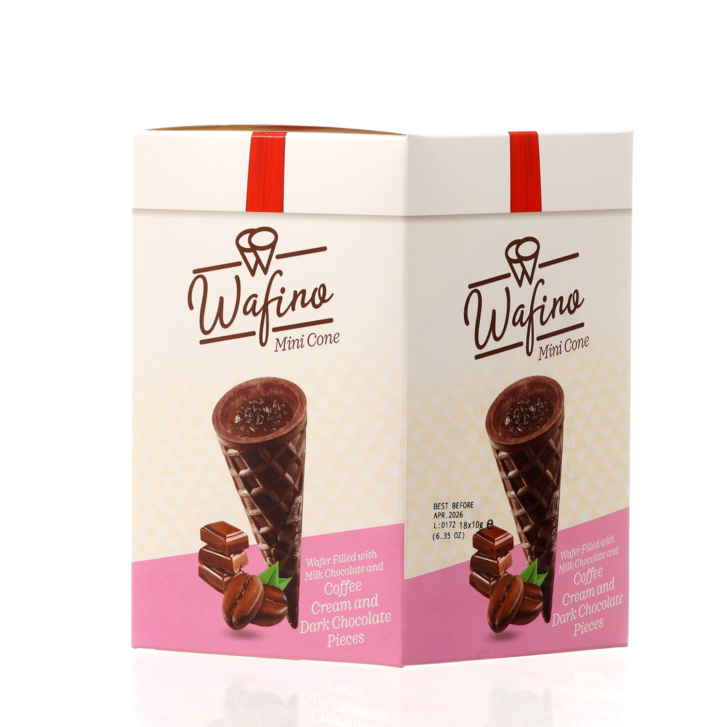WAFINO WAFFLE CONES FILLED WITH MILK CHOCOLATE AND COFFEE CREAM