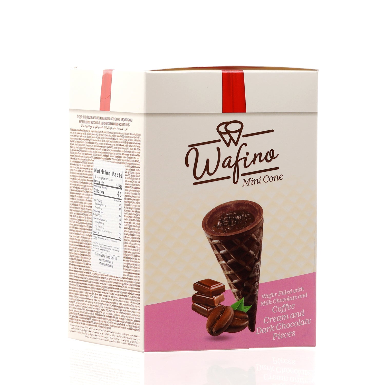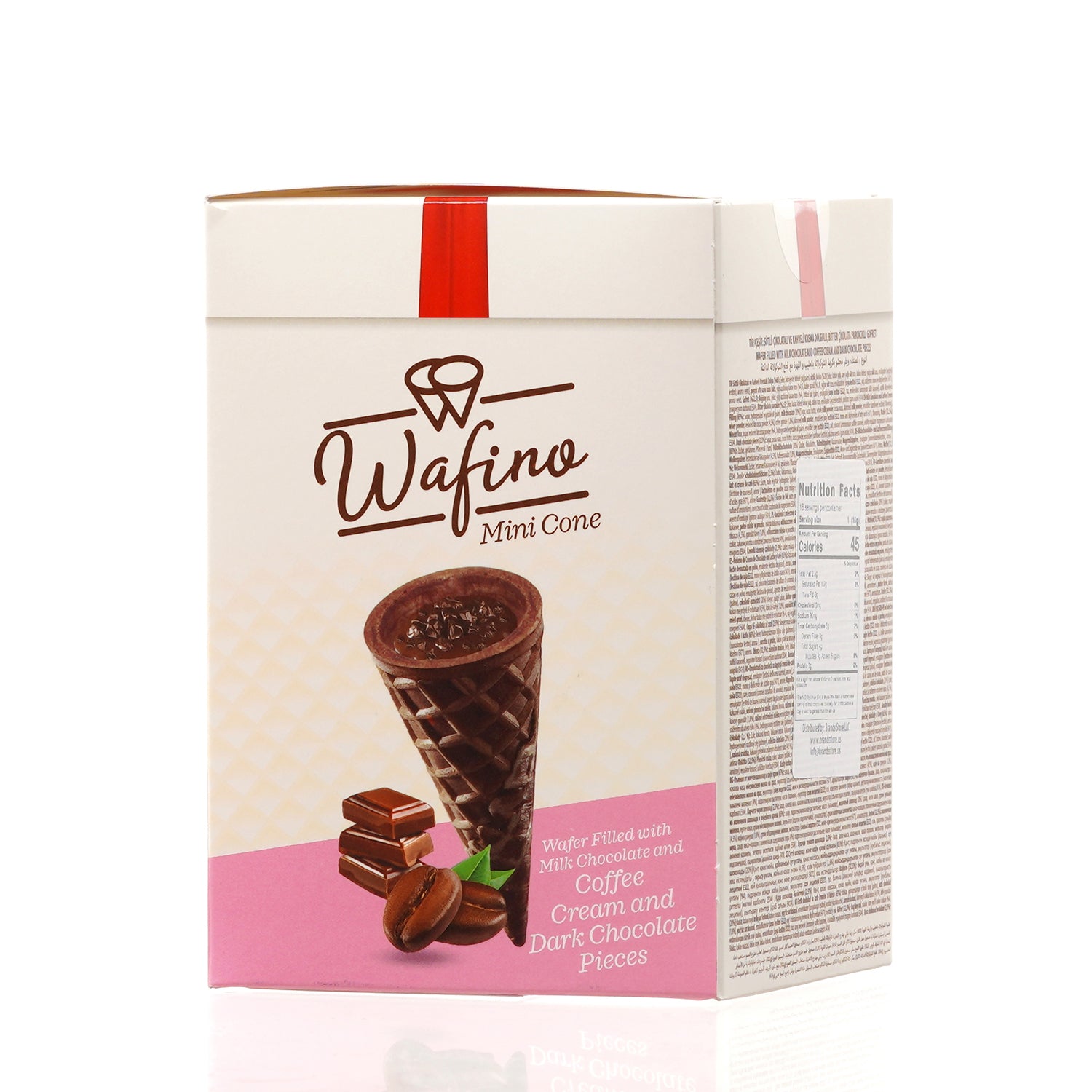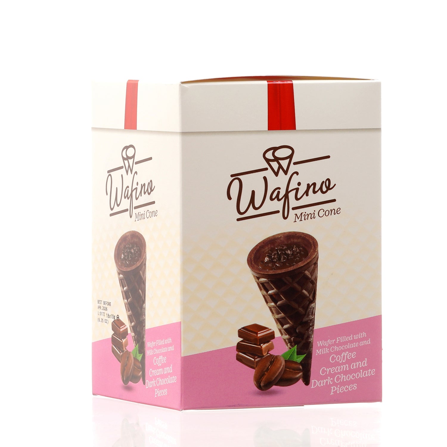 WAFINO WAFFLE CONES FILLED WITH MILK CHOCOLATE AND COFFEE CREAM