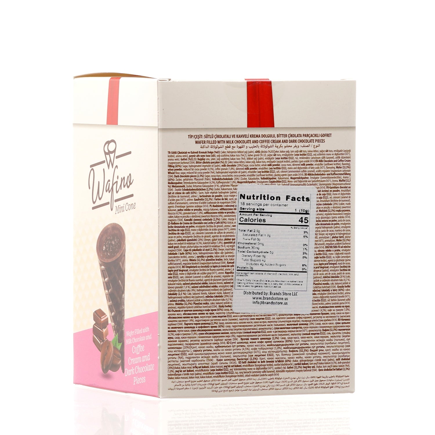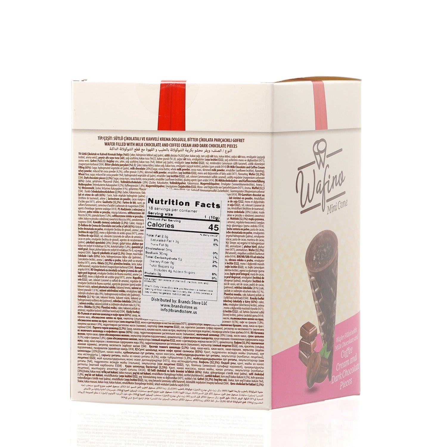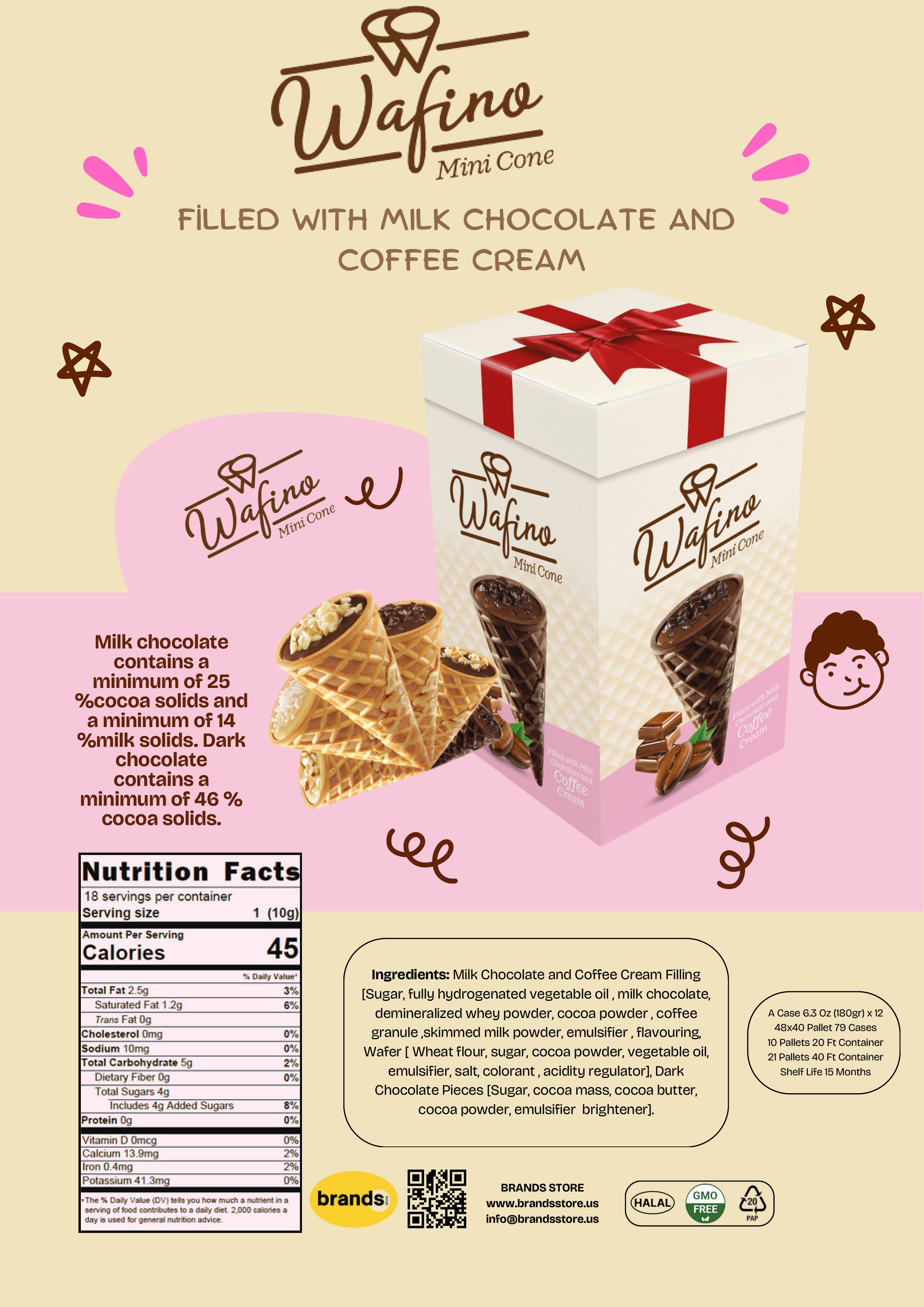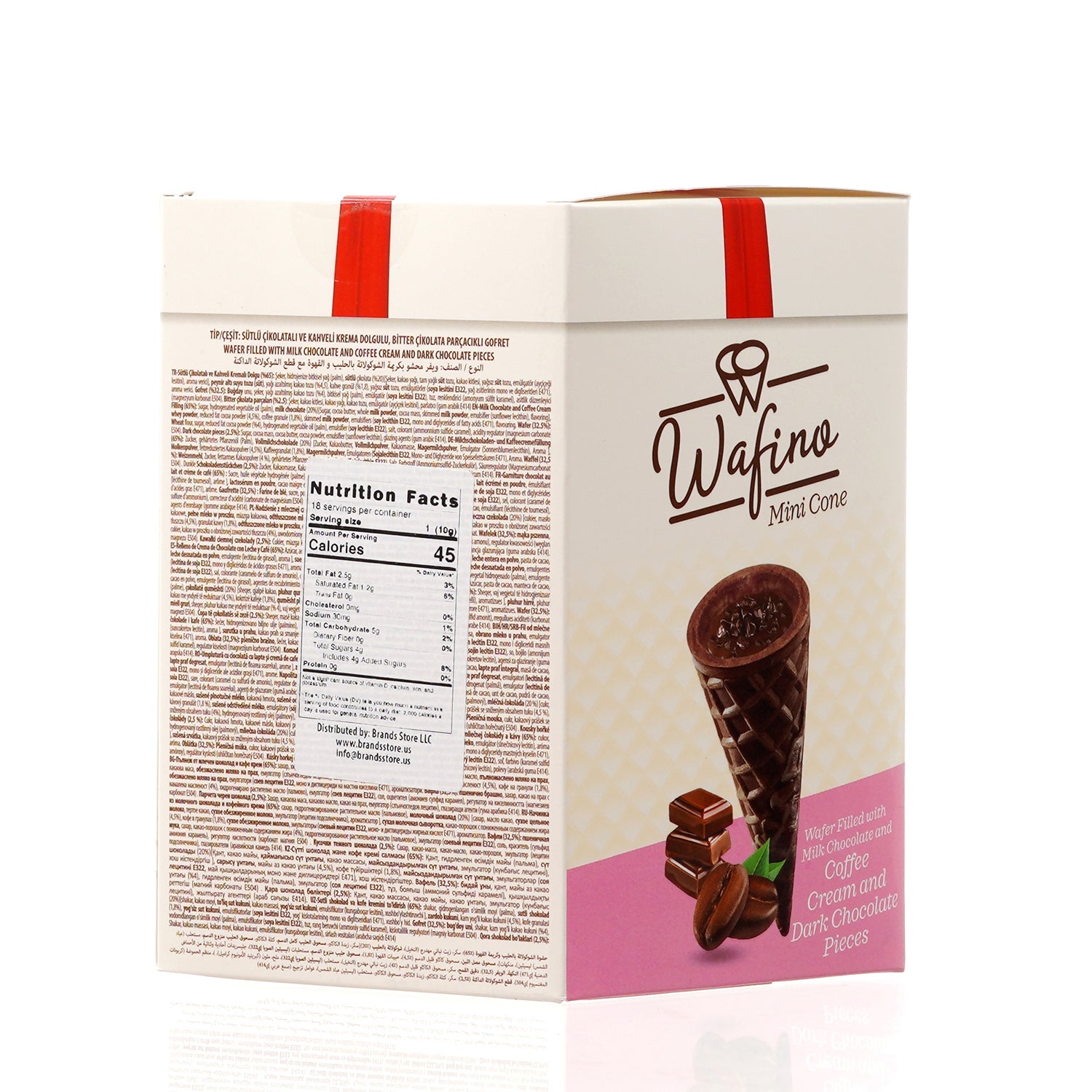 WAFINO WAFFLE CONES FILLED WITH MILK CHOCOLATE AND COFFEE CREAM