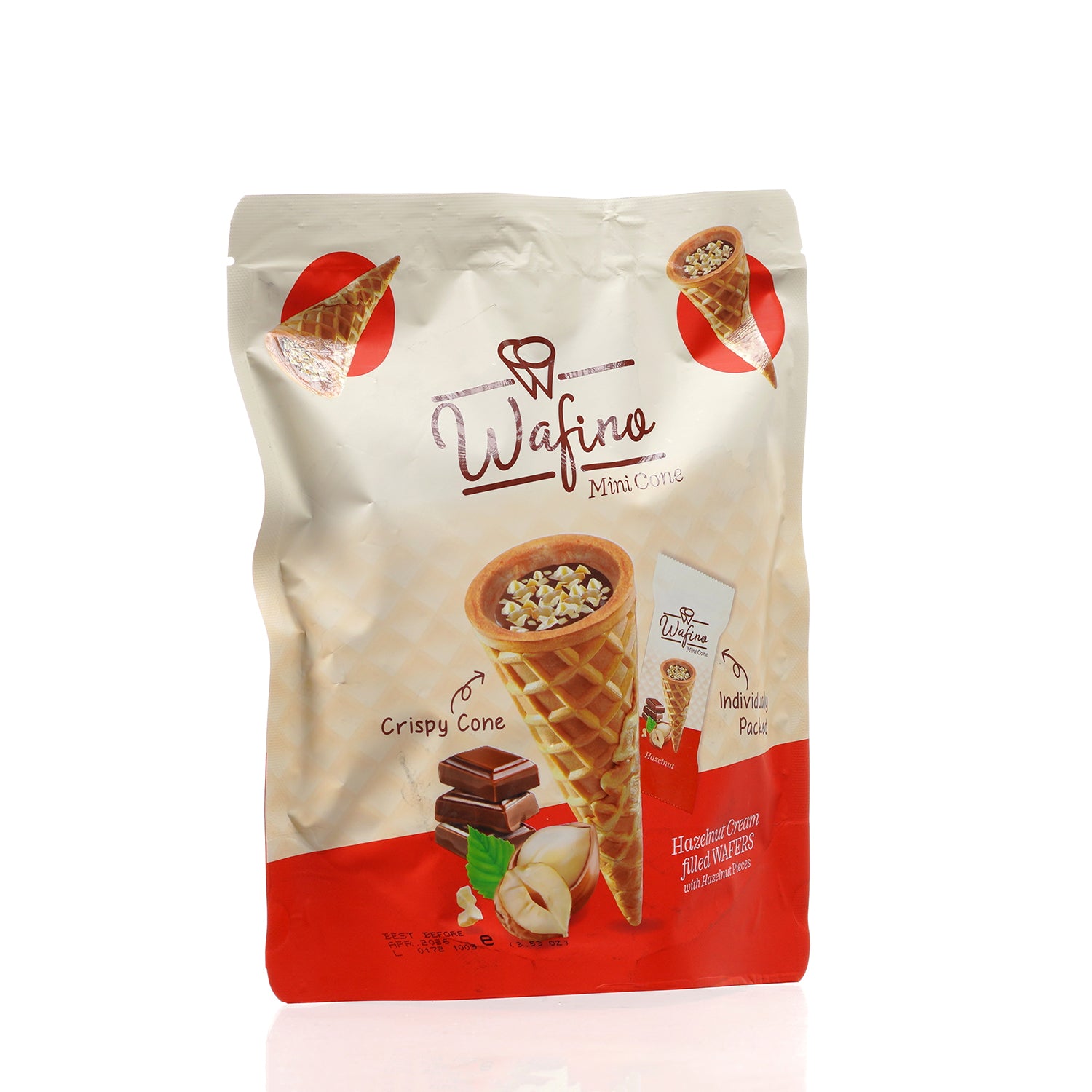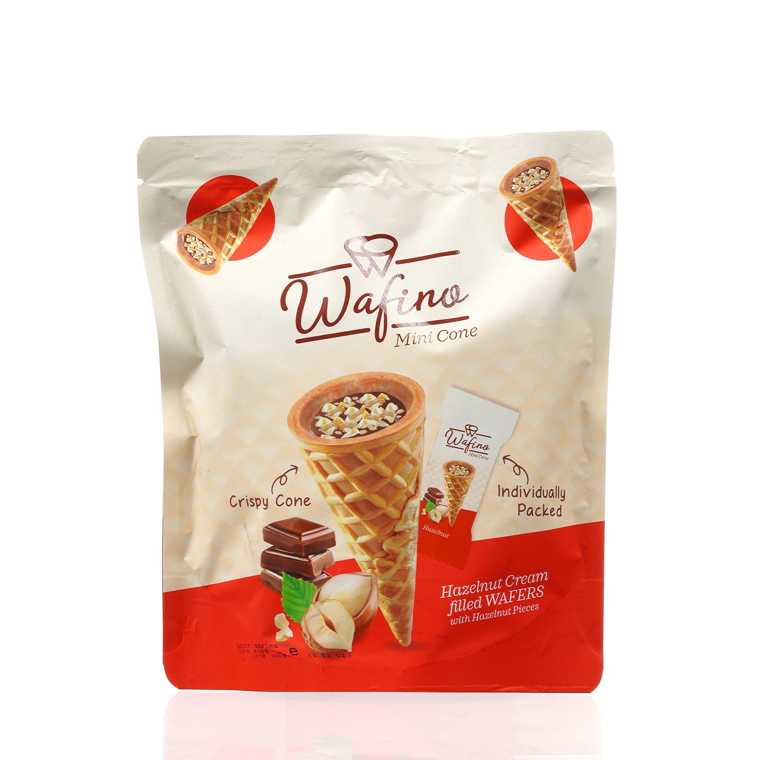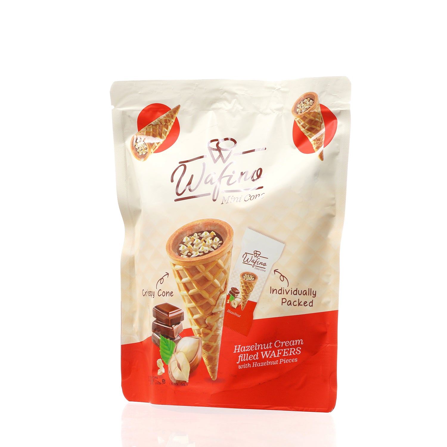 WAFINO WAFFLE CONES FILLED WITH MILK CHOCOLATE AND HAZELNUT CREAM(100gr)