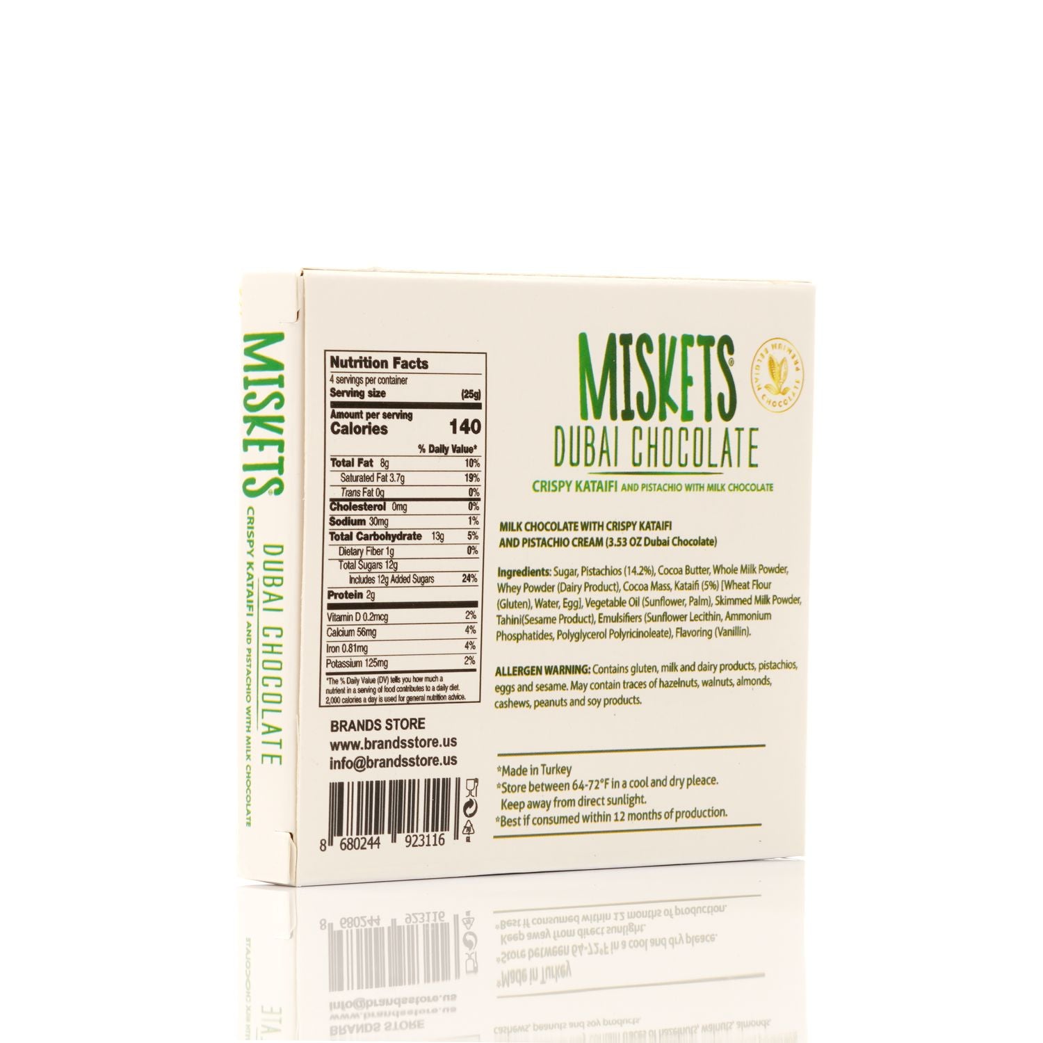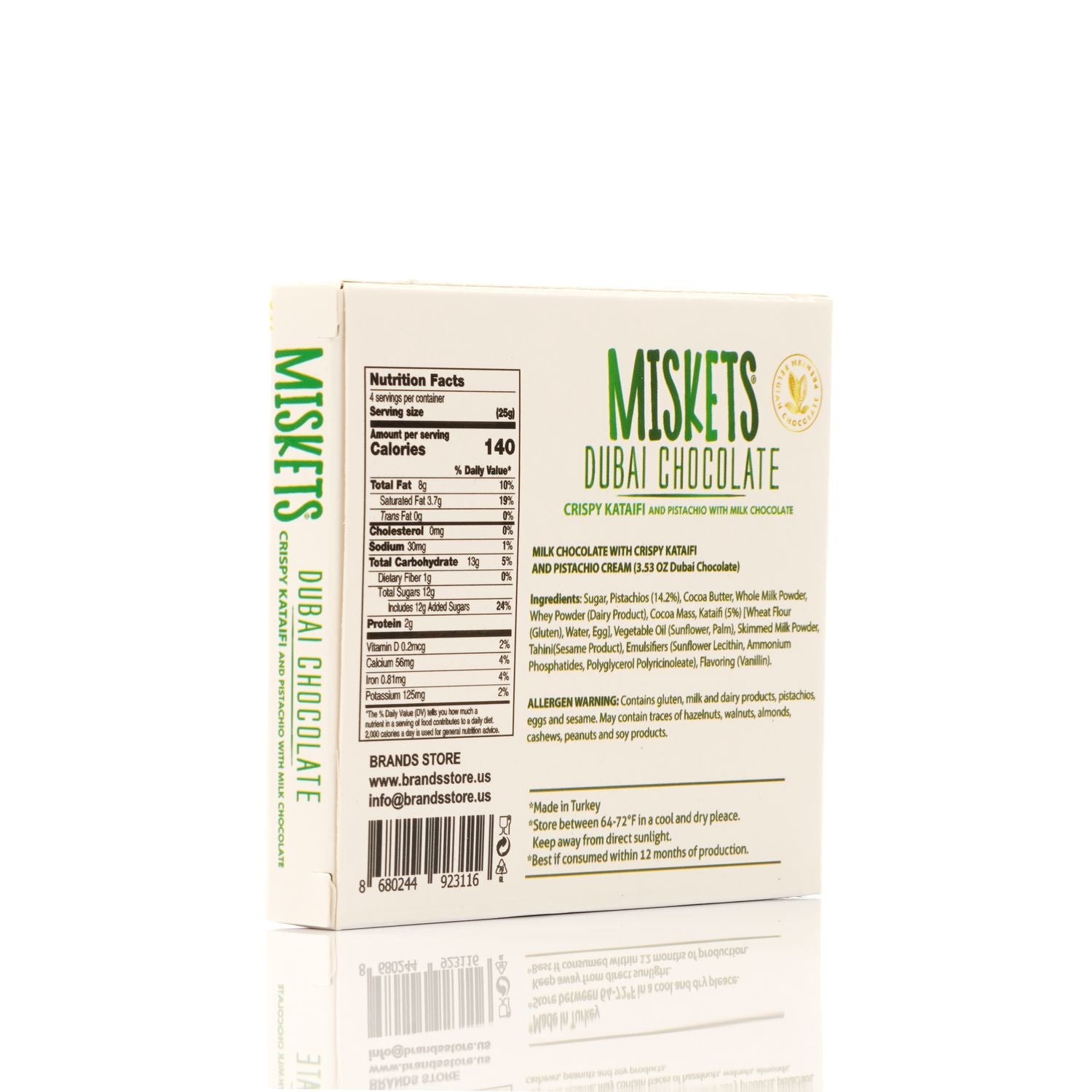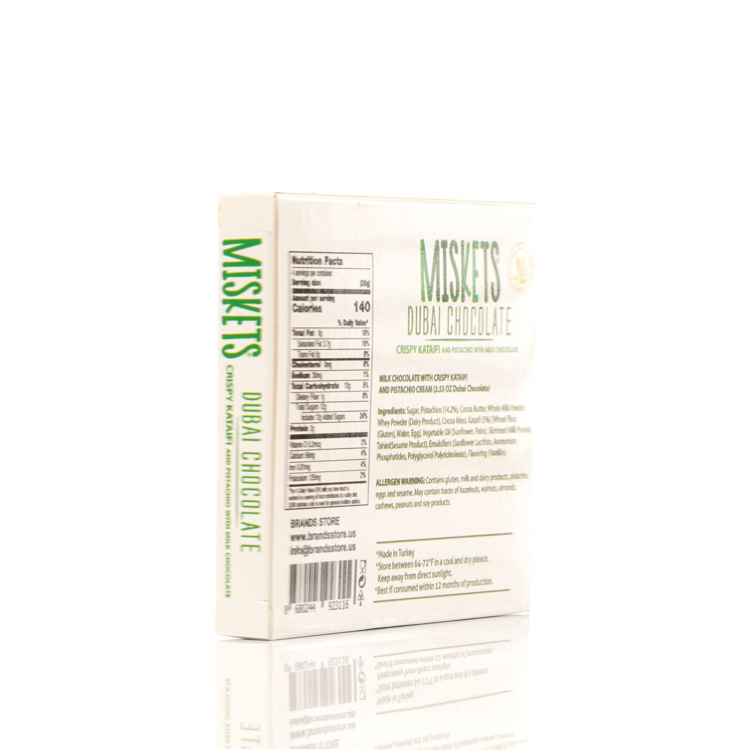 MISKETS MILK CHOCOLATE WITH CRISPY KADAYIF AND PISTACHIO FILLING (100gr. Dubai Chocolate)