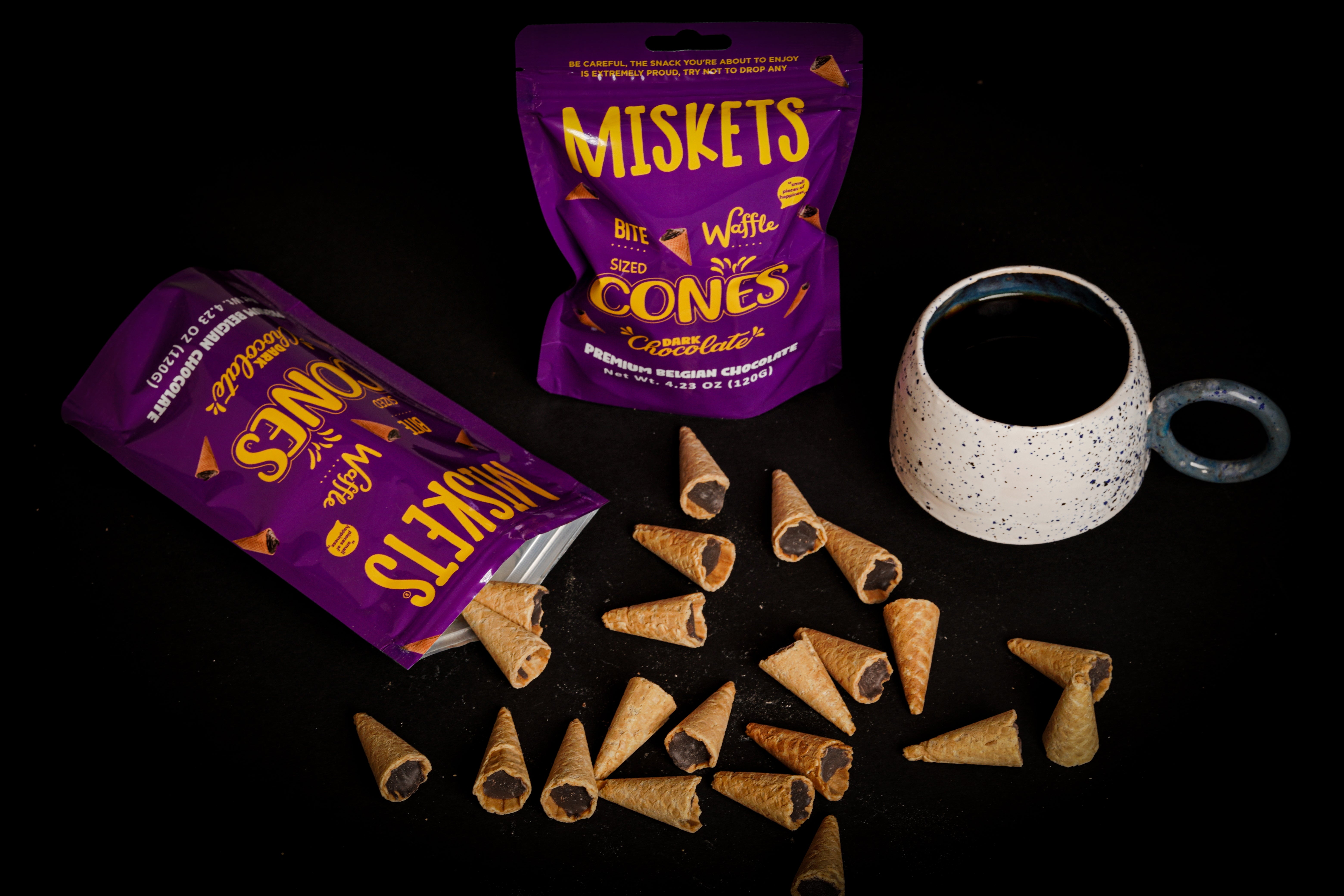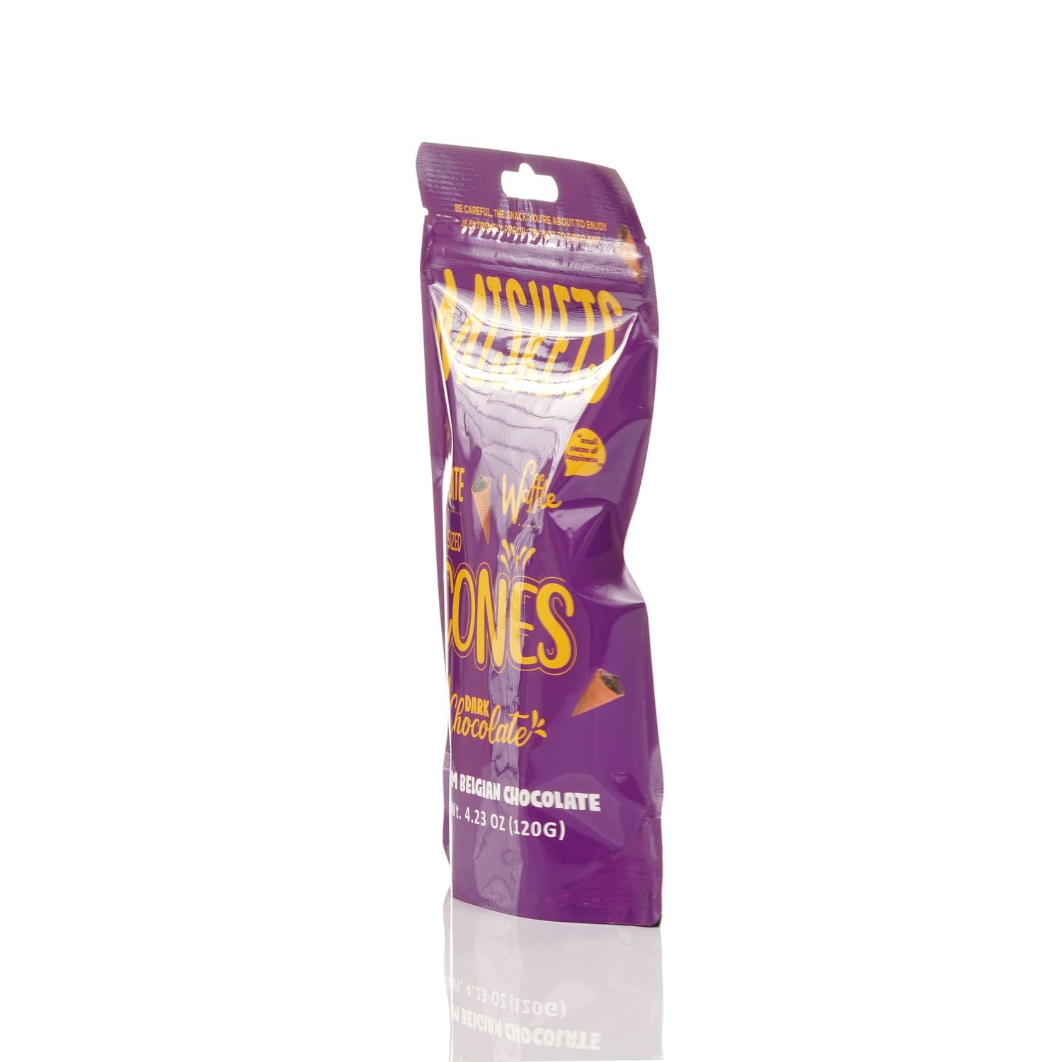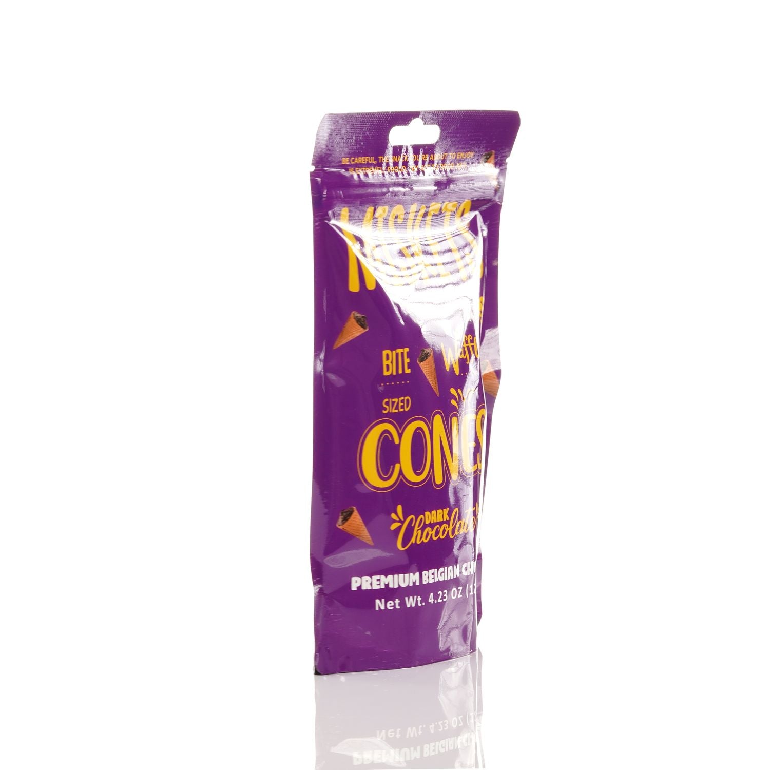 BELGIAN DARK CHOCOLATE-FILLED MINI WAFFLE CONES – Indulge in the rich and smooth taste of premium Belgian milk chocolate inside every crispy mini waffle cone.