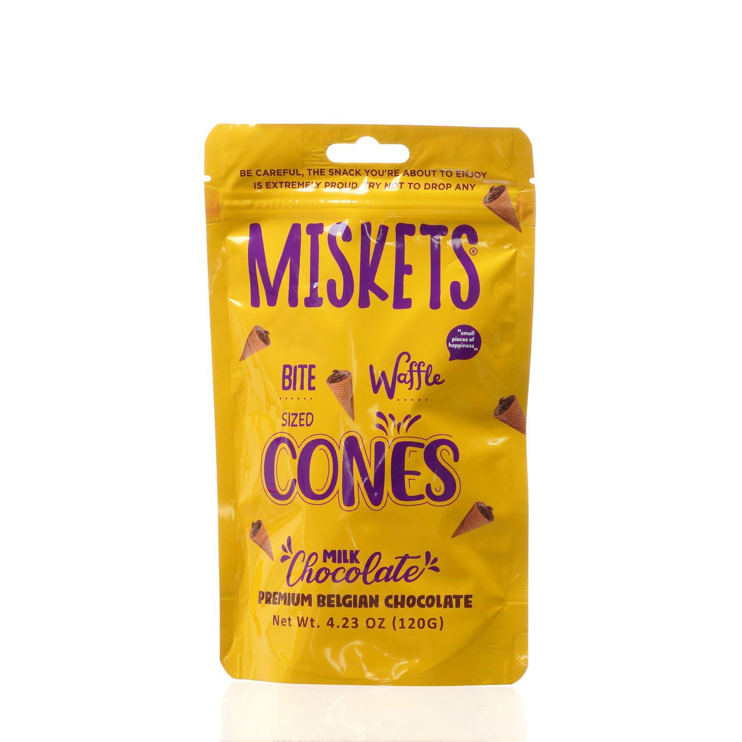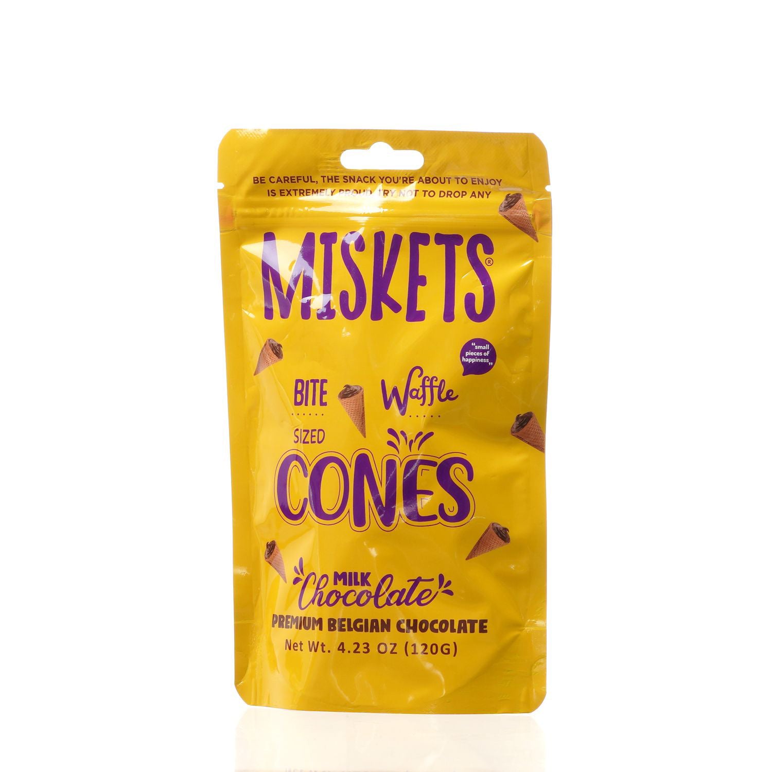 BELGIAN MILK CHOCOLATE-FILLED MINI WAFFLE CONES – Indulge in the rich and smooth taste of premium Belgian milk chocolate inside every crispy mini waffle cone.
