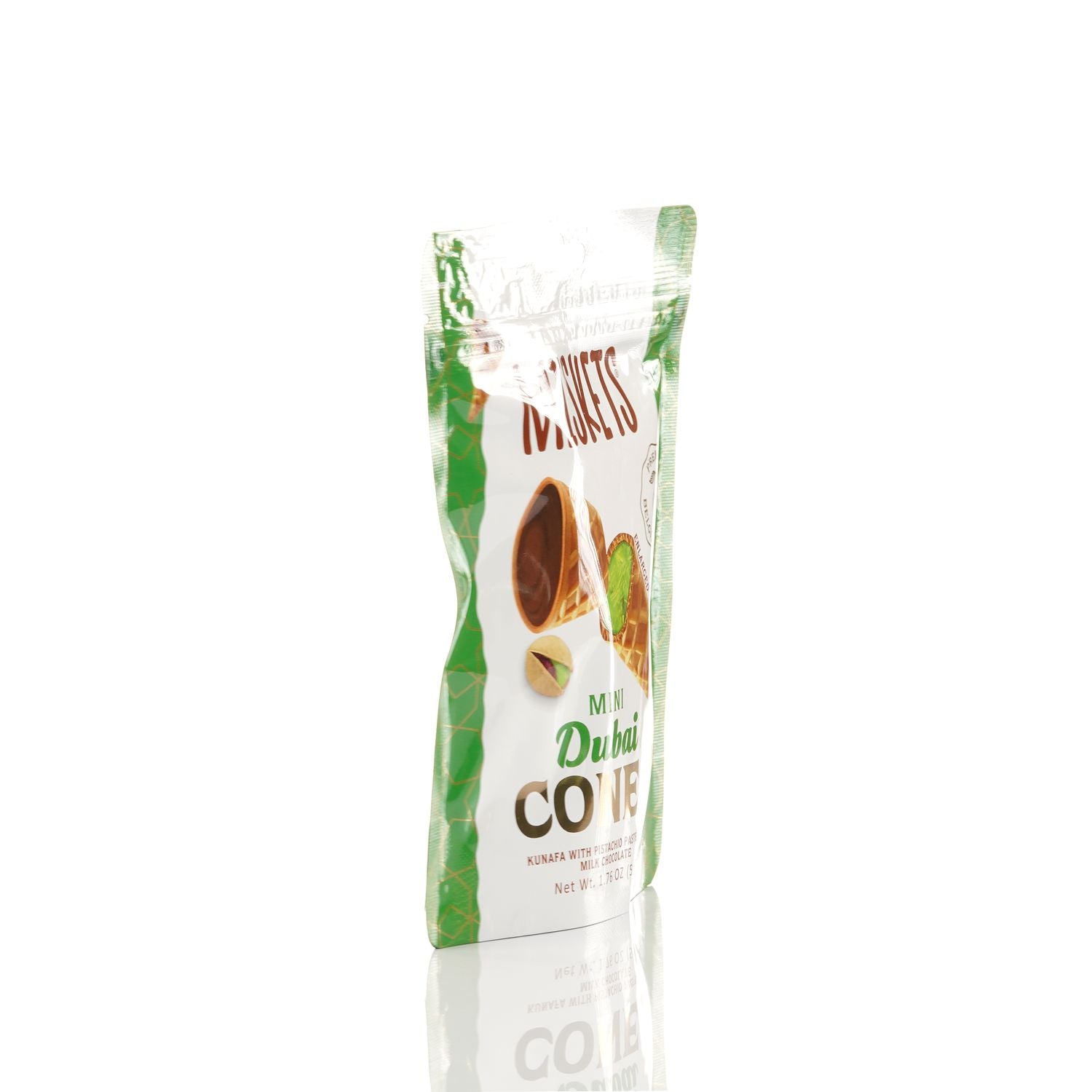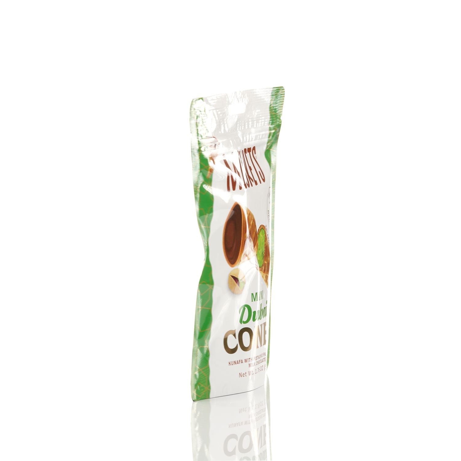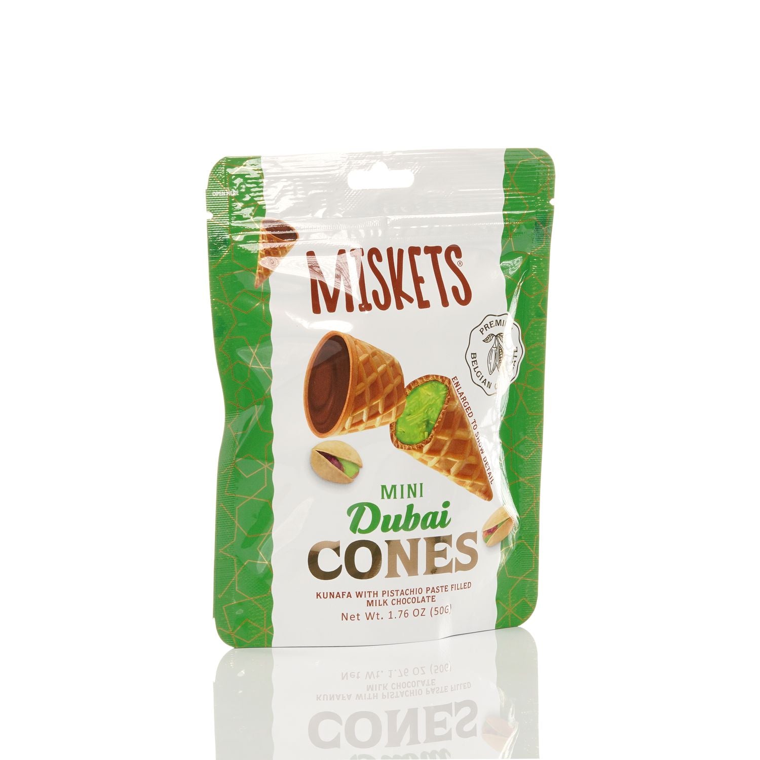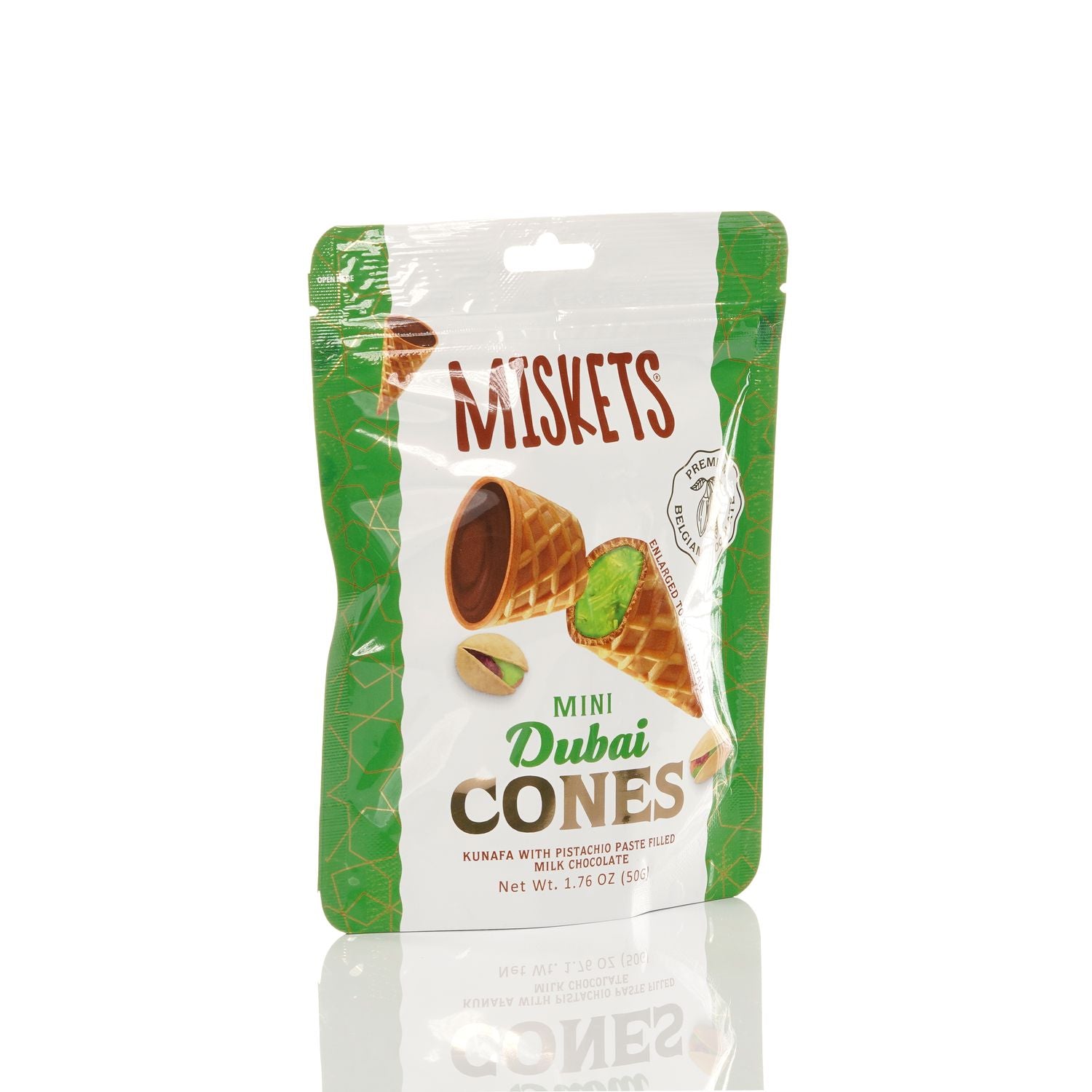 BELGIAN DUBAI CHOCOLATE-FILLED MINI WAFFLE CONES – Indulge in the rich and smooth taste of premium Belgian milk chocolate inside every crispy mini waffle cone.