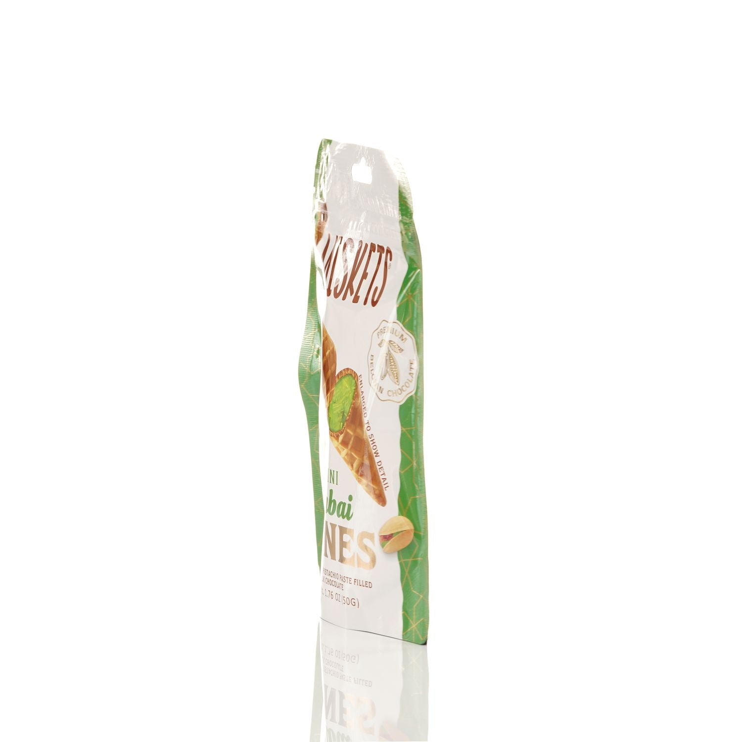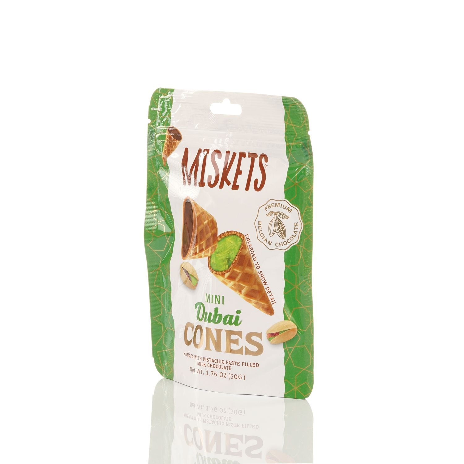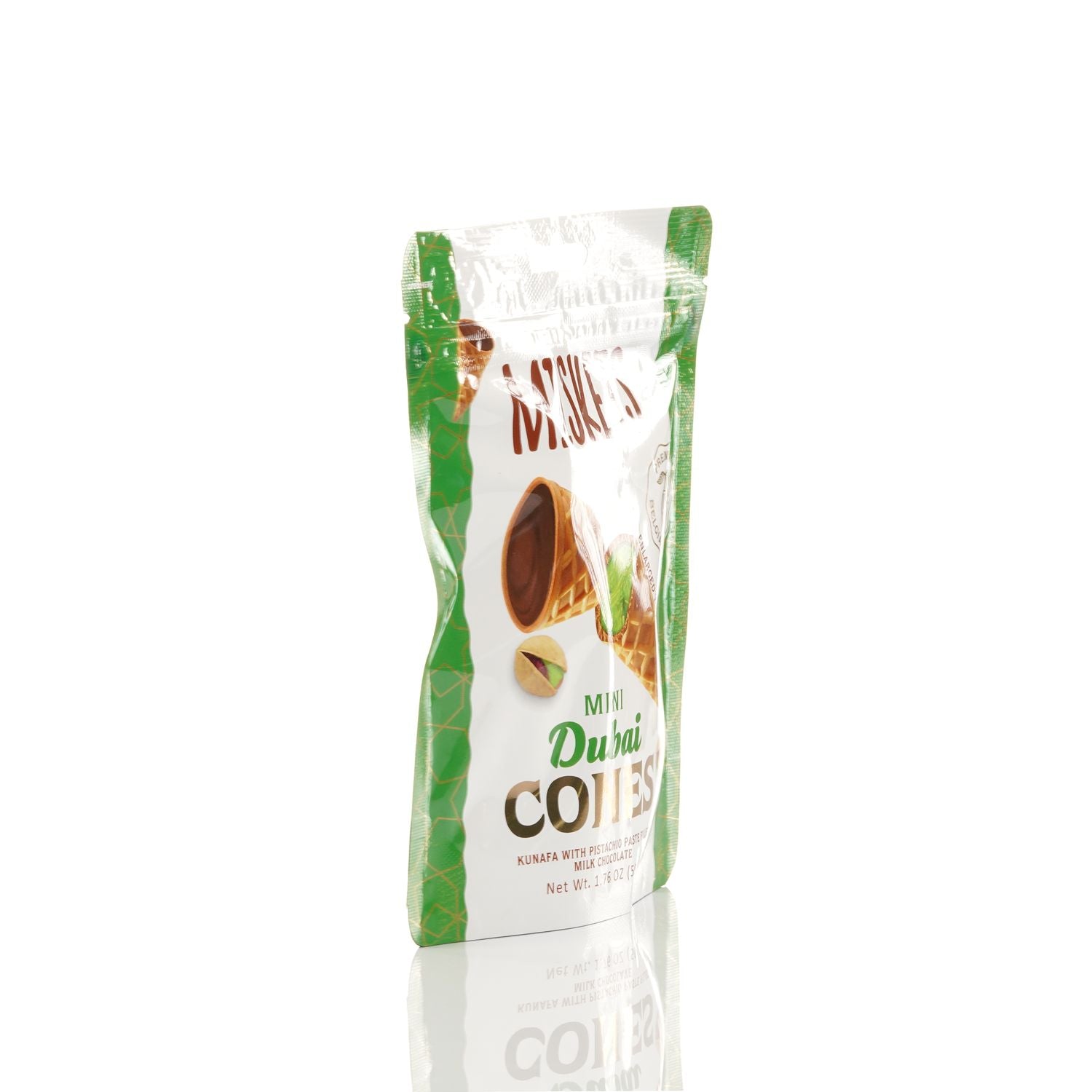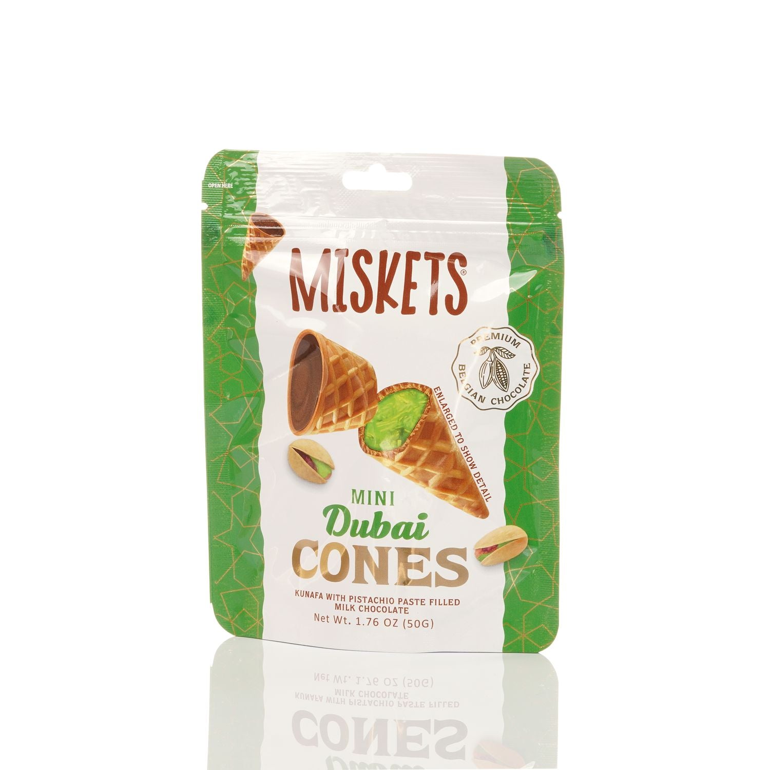 BELGIAN DUBAI CHOCOLATE-FILLED MINI WAFFLE CONES – Indulge in the rich and smooth taste of premium Belgian milk chocolate inside every crispy mini waffle cone.