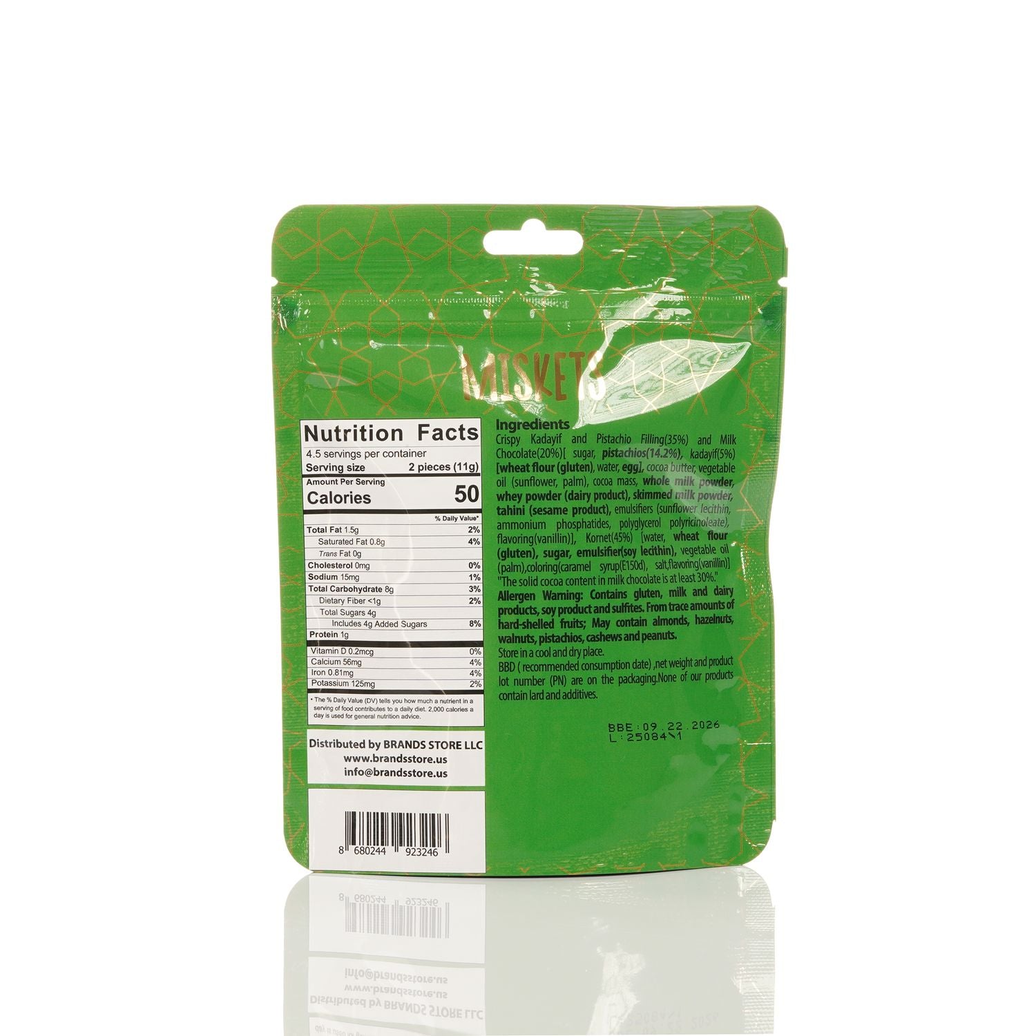 Ingredients: Crunchy Kadaifi with Pistachio Filling (35%) and Milk